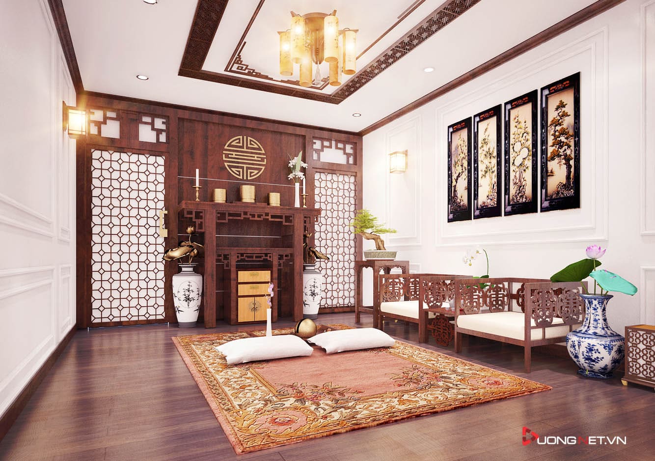 Trang trí lại bàn thờ thật tôn nghiêm và đầy đủ quy tắc phong thủy.