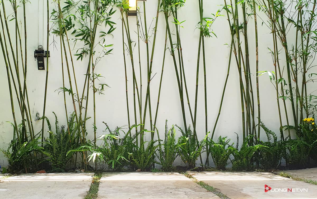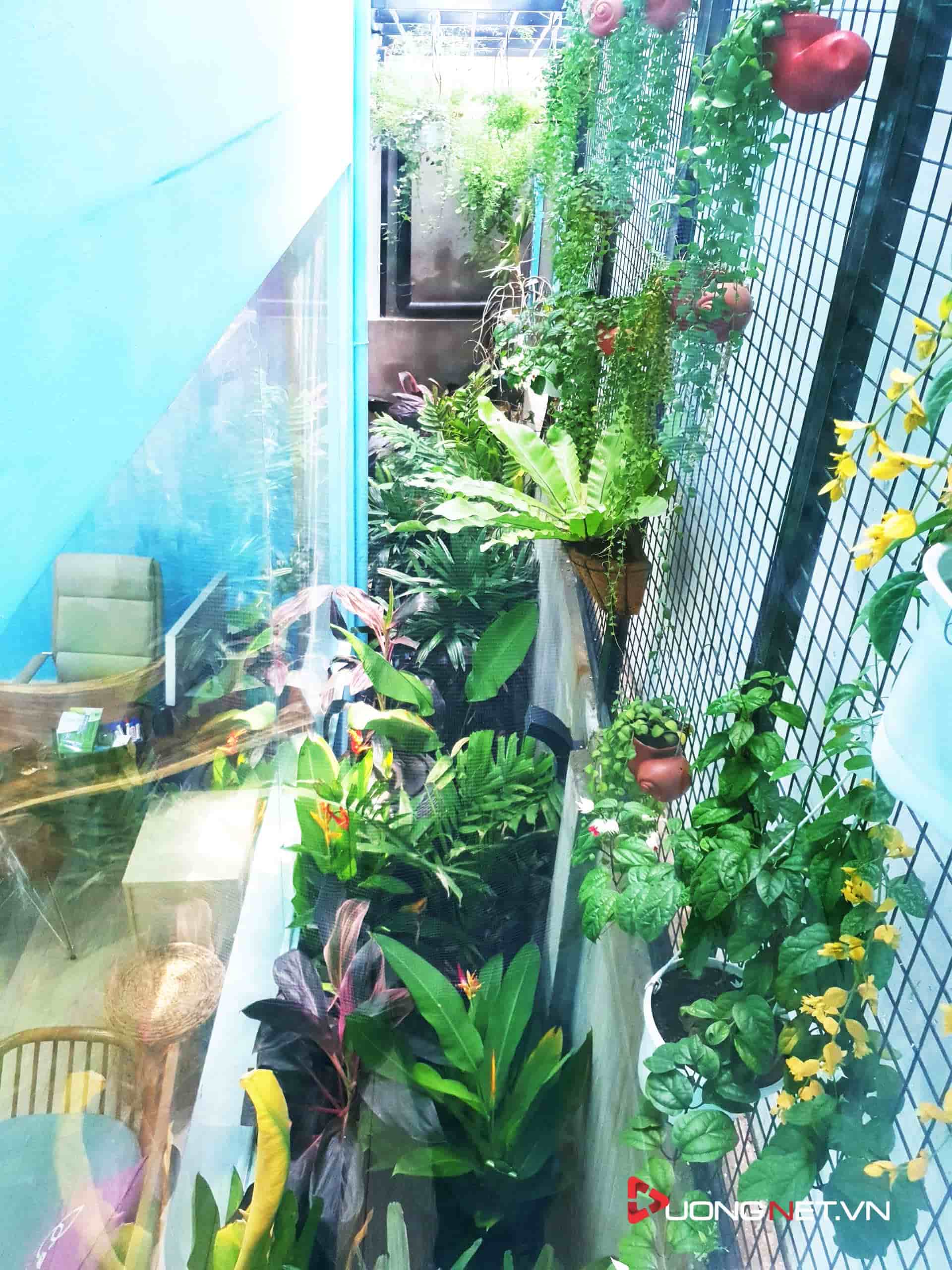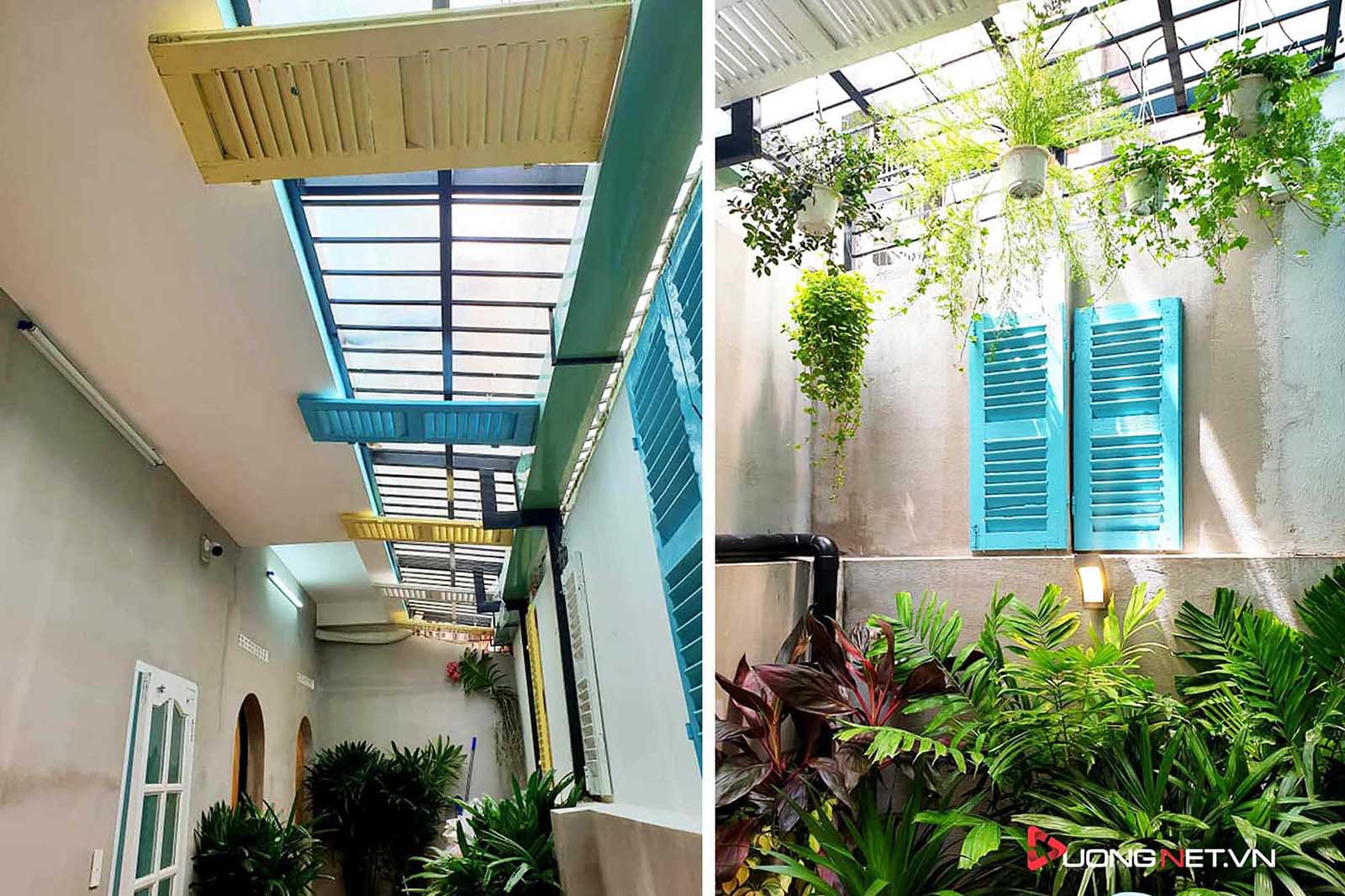 Góc sân vườn xanh mướt tạo cảm giác vui tươi ngay khi đặt chân đến