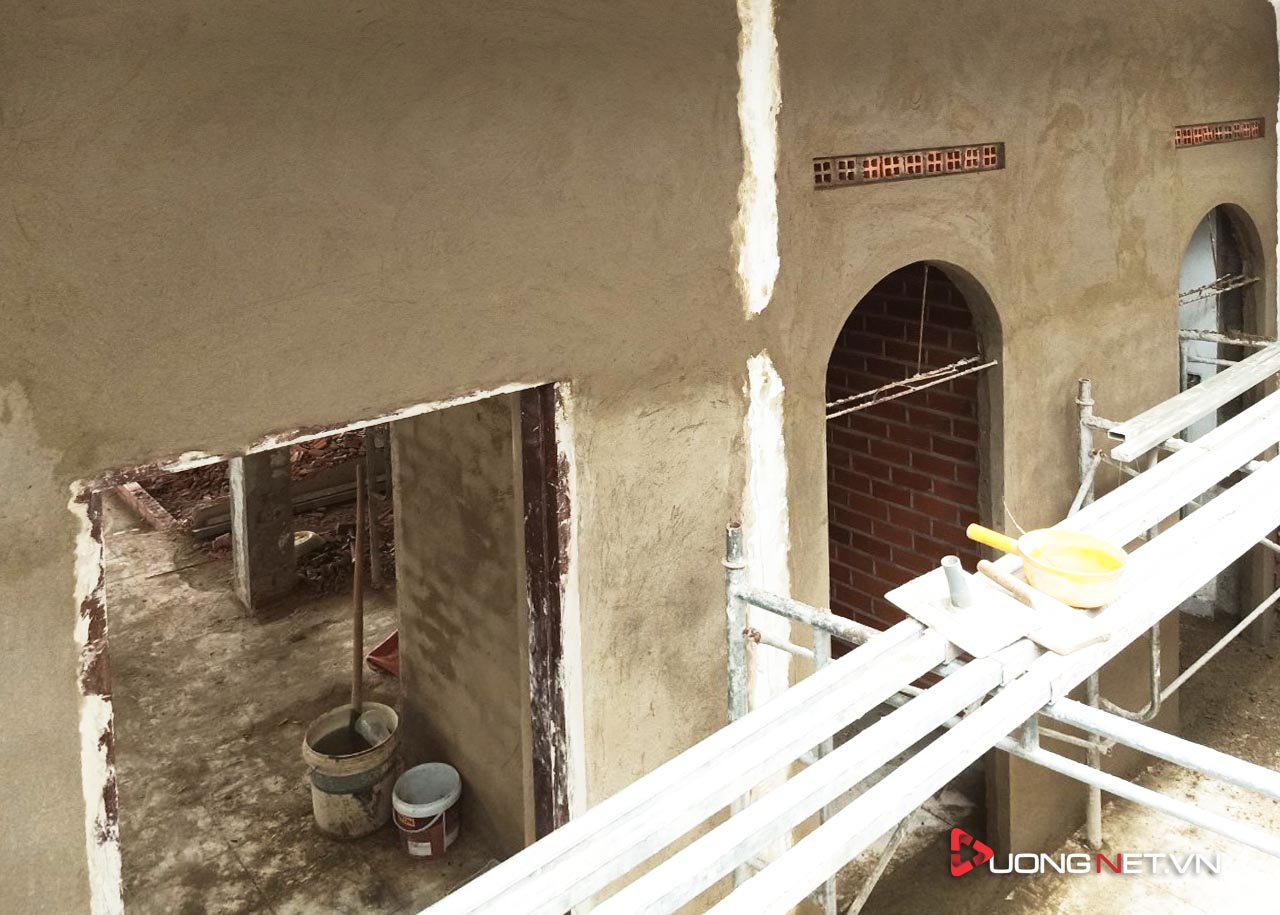 Thi công cải tạo Văn phòng: Công tác xây tô cải tạo các khung cửa sổ trệt và lầu 1