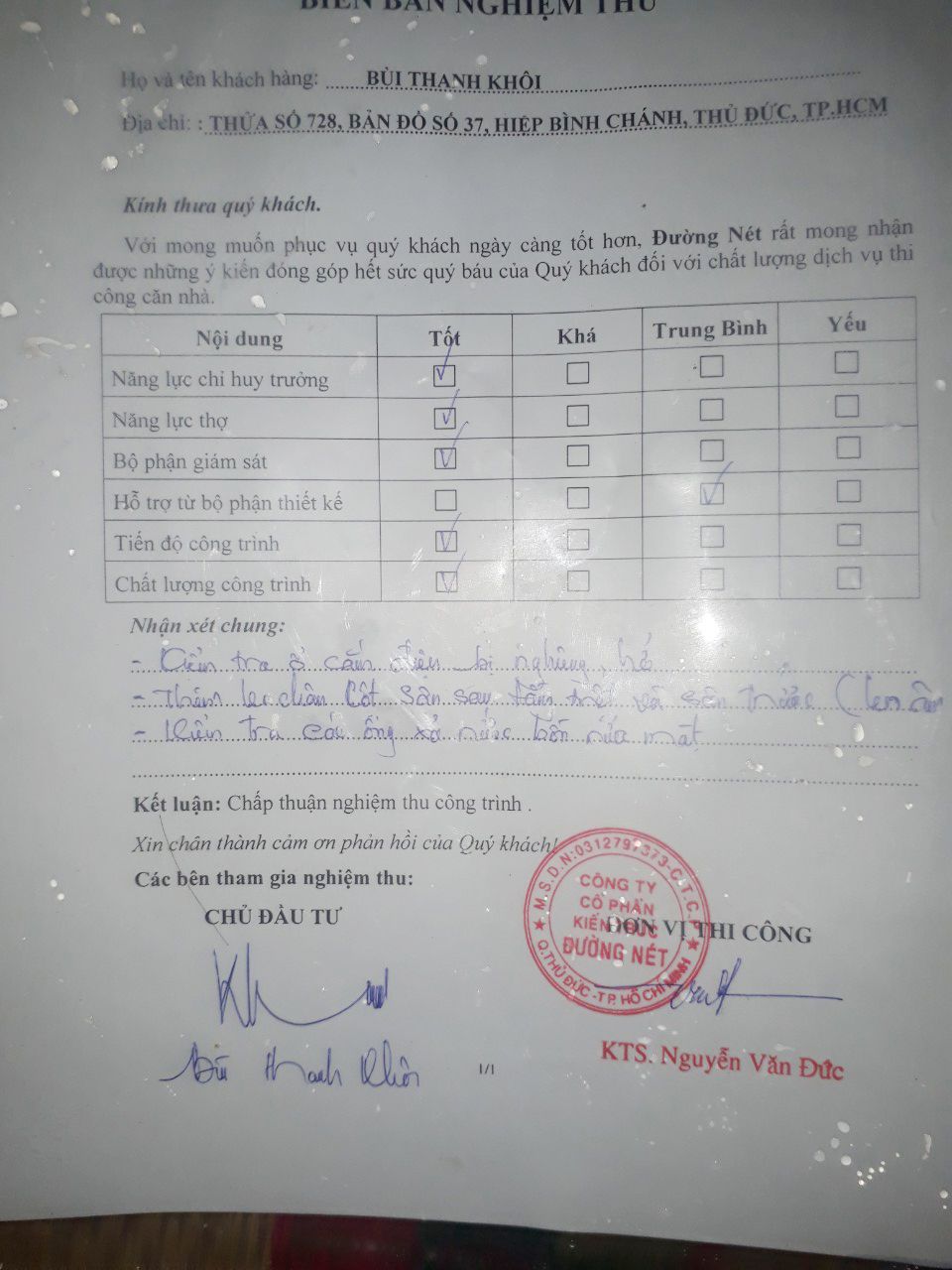• Giai đoạn này nếu như tìm được tiếng nói chung giữa khách hàng và chủ thầu thì việc nghiệm thu và hoàn công sẽ diễn ra một cách nhanh chóng và thuận lợi.